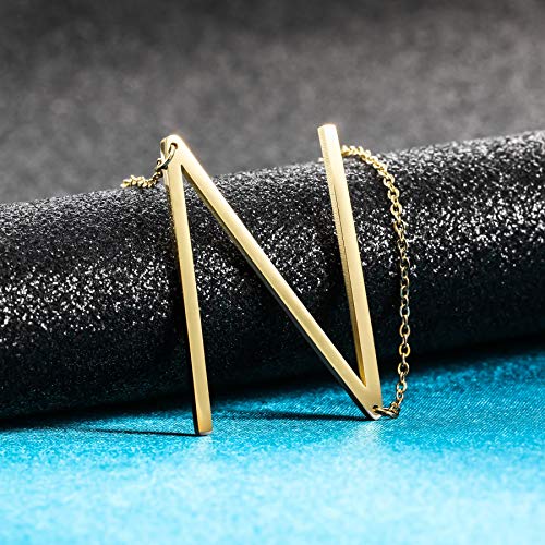 MOWOM Collana con Ciondolo con Lettera Iniziale Grande Personalizzata Incisione Personalizzata Nome Data per Donna Ragazza Regalo per Damigella d'Onore con Alfabeto Laterale Grande (Colore Oro N)