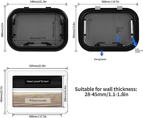 ✪ 【Applicabilità】: la finestra del camper è adatta per la maggior parte dei veicoli, come roulotte, rimorchi, veicoli modificati, veicoli speciali o edifici. Modifica la tua auto per rendere il tuo viaggio più confortevole. Diverse staffe di montaggio sono adatte a diversi spessori di parete e l'intervallo di spessore totale applicabile della parete è di 25-35 mm.