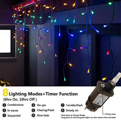 ✨ Luci Natale Esterno Cascata - 1224 LED luminosi Colorate, per un totale di 204 gocce, lunghezza luce 30 m, cavo di alimentazione 5 m. Luci natale esterno cascata di alta qualità utilizza un filo trasparente di prima qualità con rivestimento isolante, resistente alla corrosione, all'invecchiamento e più duraturo. Illuminazione speciale e decorativa, perfetta per lucernari, finestre, giardino, interni, esterni, matrimoni, vacanze, feste, decorazioni natalizie.