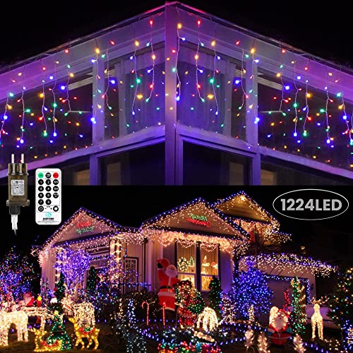 Moxled Luci Natale Esterno Cascata - 30M 1224 LED Tenda Luminosa Esterno Colorate, Luci Natale con Telecomando, 8 Modalità, Luci Decorazioni Natalizie per Finestra, Balcone, Feste