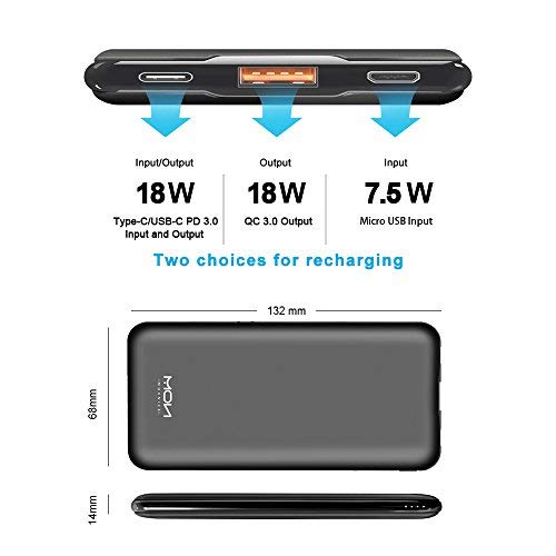 MOXNICE Power Bank 10000mAh USB-C PD da Batteria Portatile per Telefono di Tipo-C e Power Bank Quick Charge 3.0 con Tecnologia ad Alta velocità di Ricarica per iPhone iPad Samsung MacBook ECC(Nero)