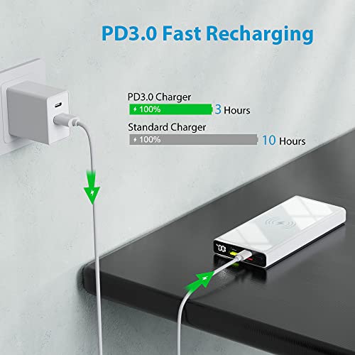 【Carica 4 Volte più Veloce】: Le ultime tecnologie di carica rapida QC4.0 e PD3.0 combinate, caricano incredibilmente velocemente il tuo cellulare dallo 0 al 60% in 25 minuti, 4 volte più veloce dei caricabatterie 1A originali.