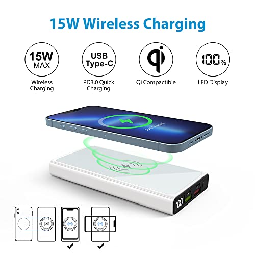 MOXNICE Power Bank Wireless Powerbank 10000mAh, 22.5W QC4.0 / 18W PD 3.0 USB C Batteria Esterna Caricatore Portatile con 4 Uscite per Smartphone e Tablet (Bianco)