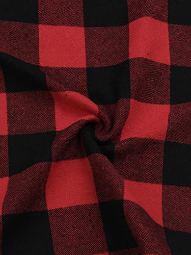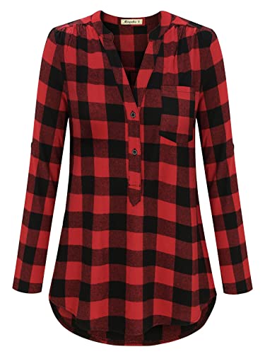 Moyabo Camicia da Donna a Maniche Lunghe in Flanella a Quadri Henley con Bottoni e Scollo a V, Colore Rosso, XXL