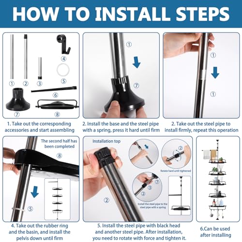 MATERIALE ROBUSTO - Il portabagagli è realizzato in tondino di acciaio inossidabile, molto resistente. L'altezza del palo può essere regolata estraendo il palo e il design a molla integrato nella parte superiore lo rende facile da spostare, resistente e stabile. I cestini per doccia sono realizzati in plastica, che è più facile da pulire rispetto ai cestini in metallo. Ogni vassoio è dotato di un parapetto per evitare che gli oggetti essenziali del bagno cadano.