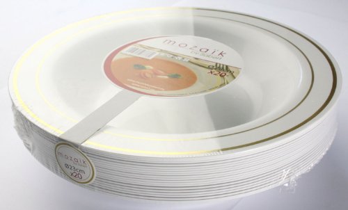 MOZAIK Piatti fondi di plastica bianchi con bordo dorato MOZAIK da 23 cm, 20 pezzi