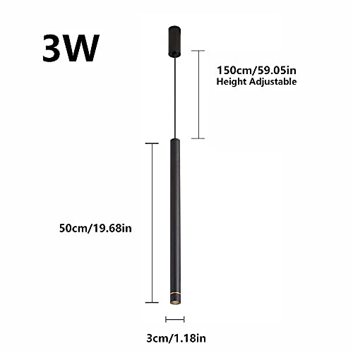Mozeny Lampadario in Alluminio Nero Lampada A Sospensione A Tubo Lungo A LED Lampada Sospensione per Isola Cucina Lampada A Sospensione Cilindrica 3W Camera Letto Droplight Bar Faretti Illuminazione