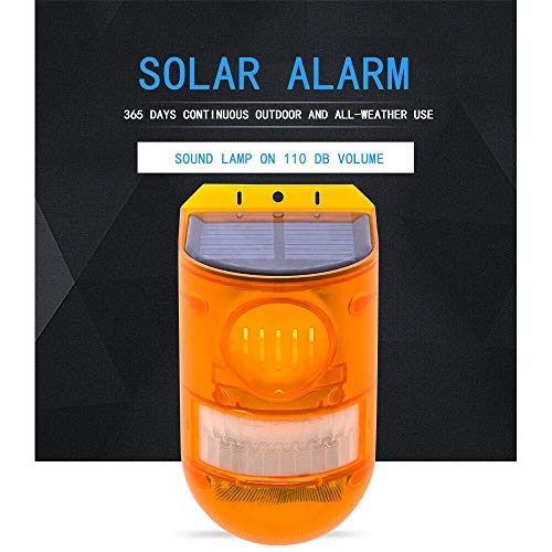 Prestazioni potenti: la luce stroboscopica solare con sensore di movimento sensibile può rilevare qualsiasi movimento entro 5-8 metri e attivare l'allarme sonoro e luce. È possibile sentire il suono di allarme di questa spia solare da 1000 metri e vedere le luci lampeggianti.