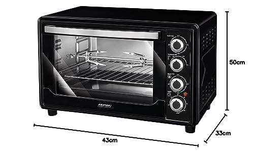 MPM MPE-07T Forno a Convezione 45 Litri, Girarrosto per Polli Acciaio Inossidabile, Porta a Doppio Vetro, 5 Modalità di Calore, Timer, Regolazione della Temperatura, Nero, 2000W