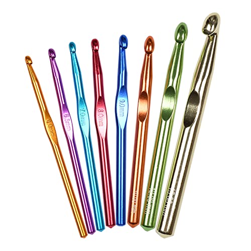 Colori Colorati: il tradizionale set di uncini in metallo è disponibile in una varietà di colori innovativi, in modo che sia facile riconoscere le diverse dimensioni. Le dimensioni sono incise sul manico e non si consumano dopo un lungo utilizzo.