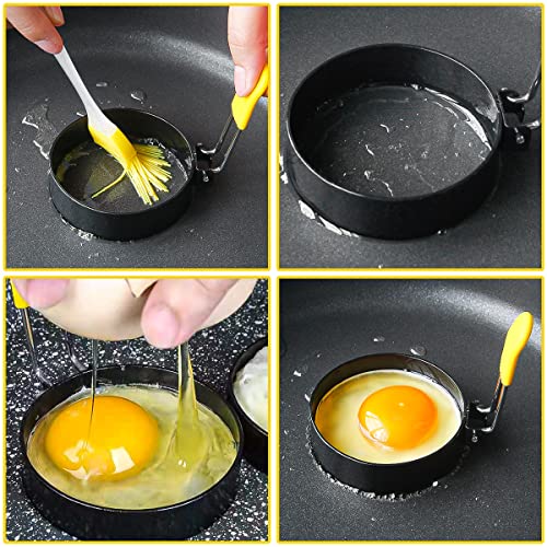 MplehDa Anelli d'uovo acciaio inox Stampi, Pancake Anello Stampo con pennello a olio, Anelli d'uova Antiaderente, Cottura Uova, Pancake e Omelette, Confezione da 4
