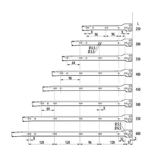Mprofi MT® (1 Paia) Guide per Cassetti-Guide per Cassetti Estrazione Parziale-Binari per Cassetti Scorrevoli-Guide per Cassetti a Scorrimento Morbido-Bianco-L:250mm