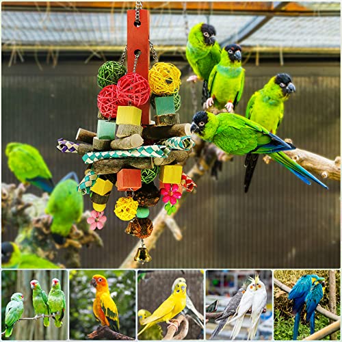 MQUPIN Uccello Parrot Giocattoli Grande Masticare Naturale Parrot Cage Appeso Masticare Multicolore Blocchi di Legno Naturale Giocattolo Dadi Sepaktakraw Parrot Masticare Giocattolo per Grandi Parrot
