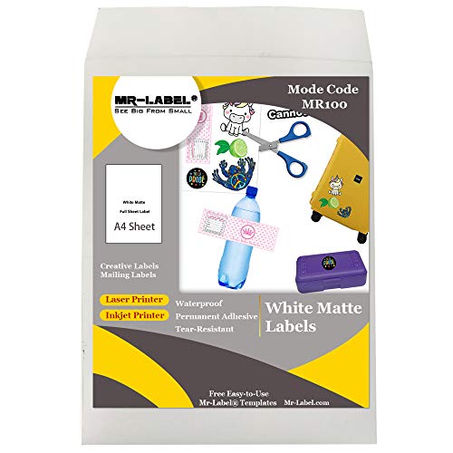 Mr-Label White Matte Etichetta resistente agli strappi impermeabile - Foglio A4 completo - Compatibile con getto d'inchiostro e laser (bianca, 25 fogli)