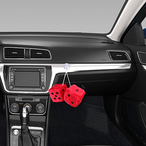 MRCARTOOL - Coppia di dadi da appendere a specchio quadrati, in peluche, con puntini, decorazione per interni auto, colore: rosso