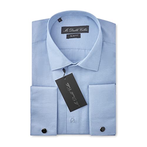 MrDoubleCollar Camicie formali a doppio polsino Slim Fit include gemelli in metallo manica lunga, Oxford blu, S