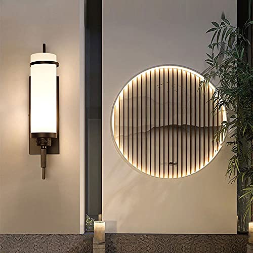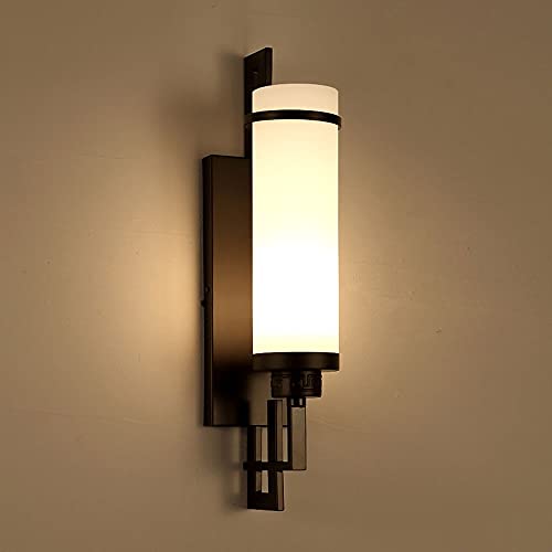 Mrdsre Lampada da parete con paralume in vetro in stile cinese Lampada da parete per interni con paralume in vetro cilindrico in metallo E27 Applique da parete per corridoio Ristorante Hotel Decor/Ner