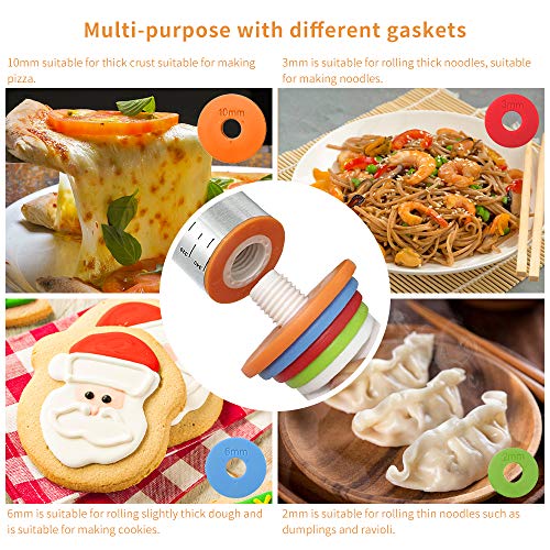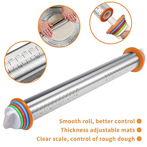 Mreechan Mattarello in Acciaio Inossidabile, Dischi Regolabili e marcatura di misurazione Tappetino in Silicone, mattarello per Pasticceria, Pizza, Pasta e Biscotti