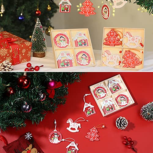 Mreechan 24 Pezzi Ornamenti Natalizi in Legno da Appendere,Pendenti Legno Natalizi Addobbi Albero,decorazioni albero di natale per Albero di Natale Fai da Te Bianco Rosso