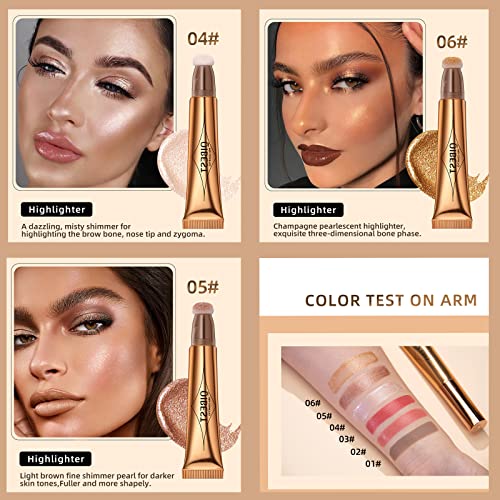 Mrettick 3 pezzi Liquid Contour Beauty Stick, leggero mixabile crema abbronzante ultra setoso, con applicatore per cuscino per una facile miscelazione per una finitura opaca liscia e naturale