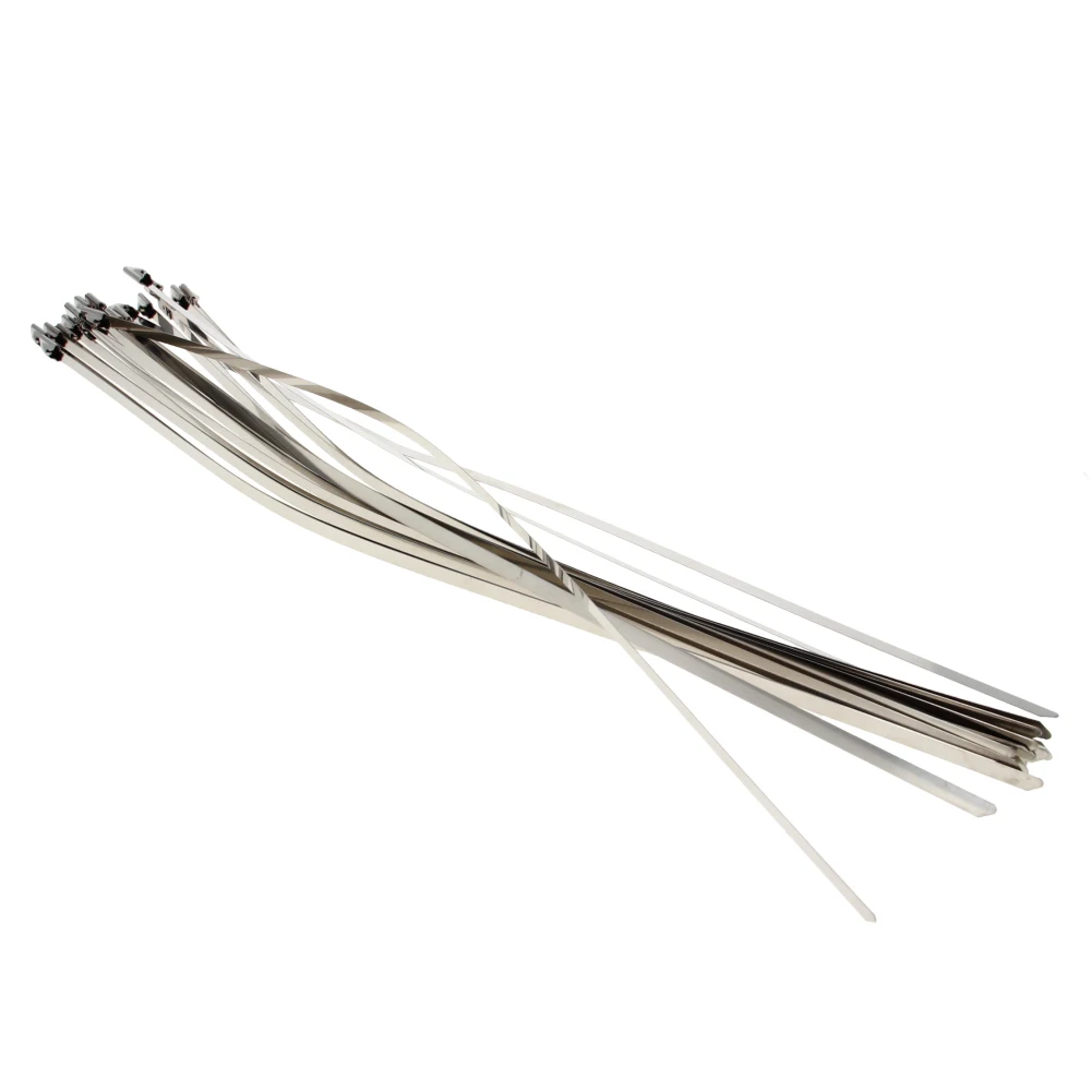 Mromax 300mm 350mm Zip Ties Stainless Steel Chrome Self-Locking Cable Clamps Exhaust Wrap for Home Office Garage Workshop