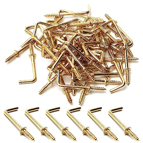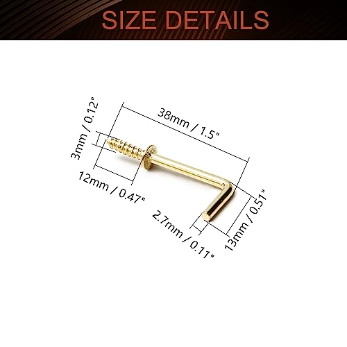 MroMax 1 50 ganci ad angolo retto a vite a 7 a forma di 7 viti, lunghezza totale 3,8 cm, in acciaio al carbonio placcato rame, viti autofilettanti a forma di L, gancio 38 x 13 mm (lunghezza x