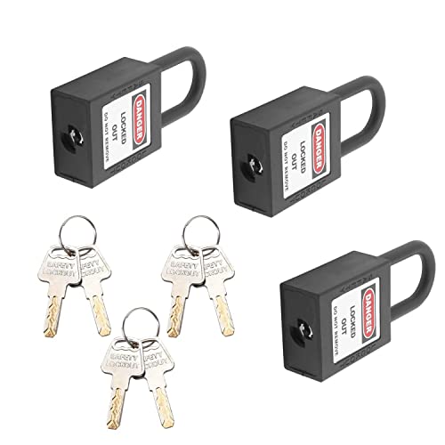 MroMax Lockout Tagout Lock, lucchetto di sicurezza con chiave diversa, lucchetto di sicurezza Loto lucchetto in nylon nero per bloccare tag out 3 pezzi