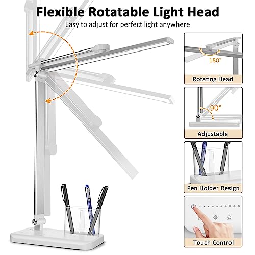 【Lampada Da Tavolo Di Alta Qualità】LED ad alta intensità ed efficienza energetica, con una durata di oltre 50.000 ore, questa lampada da tavolo da studio è realizzata con materiali metallici di alta qualità e plastica ABS. L'esclusivo design girevole della testa della lampada consente di regolare facilmente l'angolo e di ottenere una luce brillante ovunque ci si sieda.