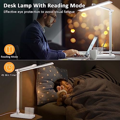 【Protezione Efficace Per Gli Occhi】Questa lampada da comodino a LED è dotata di un timer di spegnimento di 45 min e di una modalità di lettura. La modalità di lettura è una luce calda da 4000K che emette una luce uniforme e morbida che non annoia gli occhi e li protegge in ogni momento. Grazie alla funzione di memoria, il sensore di luce diurna integrato ripristina automaticamente la luminosità e il colore impostati quando la lampada da scrivania viene riaccesa.