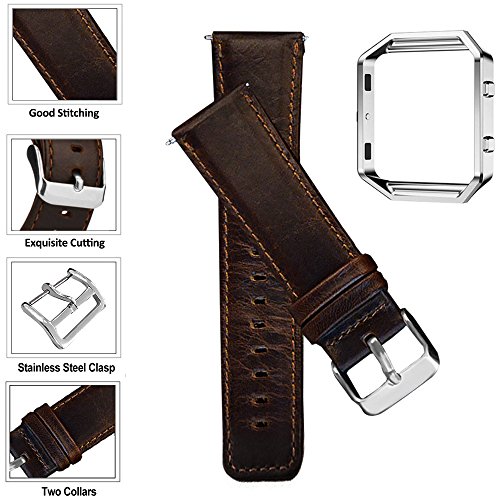 Cinturino in pelle con struttura in metallo per Fitbit Blaze (Fitbit Blaze Smartwatch non è incluso nella confezione). Misura del polso: 16 cm ~ 22,5 cm.