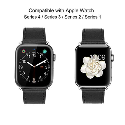MroTech Cinturino Compatibile per iWatch 44 mm 42 mm Cinturini 42mm 44mm Watch Band Serie 5 4 3 2 1 Bracciale da Polso di Ricambio in Vera Pelle per Uomo Donna Single Loop Nera con Fibbia Argento