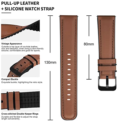 MroTech Cinturino 22mm Compatibile con Samsung Gear S3 Frontier/Galaxy Watch 46 mm/Watch 3 45mm Banda di Ricambio per Huawei Watch GT/GT2/2 Pro/2e/GT3 46mm Bracciale 22 mm,Pelle Marrone Silicone Nero