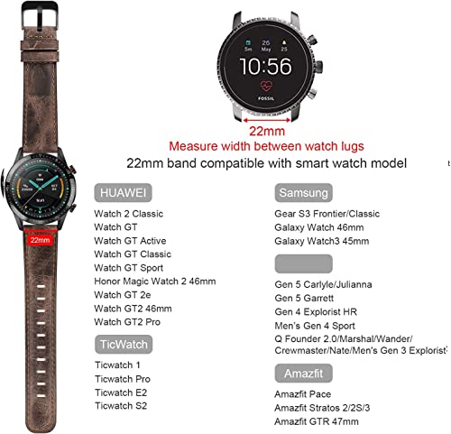 MroTech Cinturino Compatibile con Samsung Gear S3 Frontier/Classic/Galaxy Watch 46 mm/Watch 3 45mm Banda 22 mm de Ricambio per Huawei Watch GT 46mm/GT2 PRO/GT 2e Bracciale Pelle 22mm-nostalgico caffè