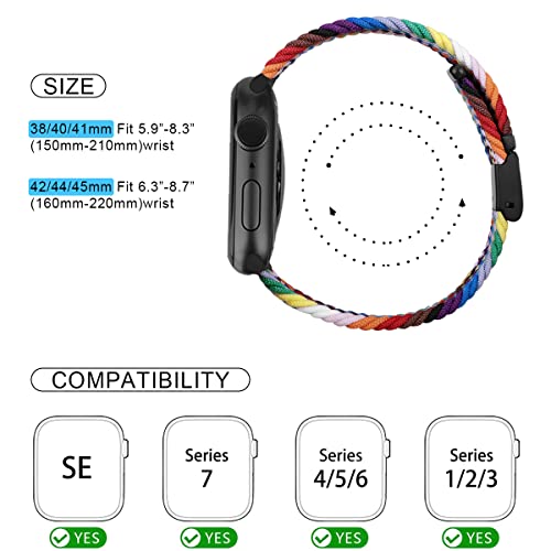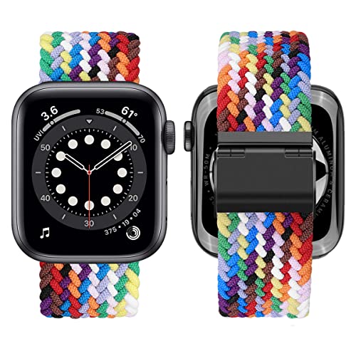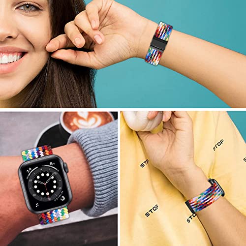 MroTech Cinturino Elastico Intrecciato Compatibile con iWatch 49mm 45mm 44mm 42mm Cinturino Nylon di Ricambio per iWatch Serie 8 7 6 5 4 3 2 1 Bracciale Tessuto 42/44/45/49 mm-casual Arcobaleno