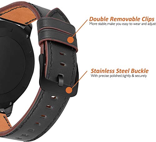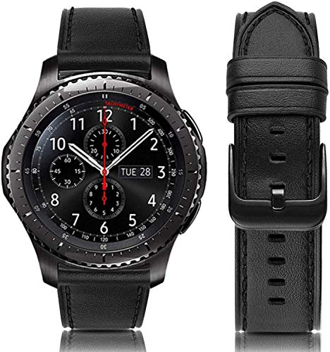 MroTech Cinturino Gear S3 Frontier / S3 Classic compatibile per Samsung Galaxy Watch 46mm 22mm Cinturino in vera Pelle Bracciale di Ricambio per Huawei Watch GT, Ticwatch Pro / E2 22 mm Banda Nero