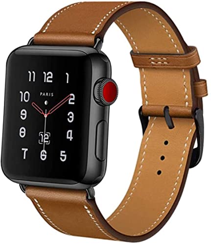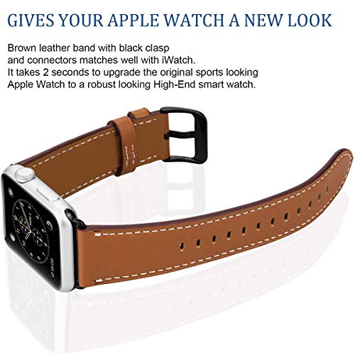 MroTech Cinturino in pelle compatibile con iwatch 49 mm, 45 mm, 44 mm, 42 mm, ricambio per iWatch serie Ultra/8/7/6/SE/5/4/3/2/1 cinturino in vera pelle con chiusura nera-marrone/nero