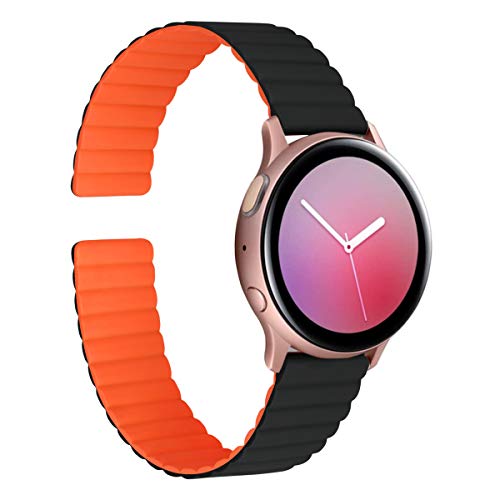 MroTech Compatibile con Samsung Galaxy Active/Active2/Galaxy Watch 3 41mm/Galaxy Watch 4/4 Classic/5/5 PRO Cinturino Magnetica Silicone Ricambio per Huawei Watch GT3 42 mm Bracciale 20mm-Nero/Arancio