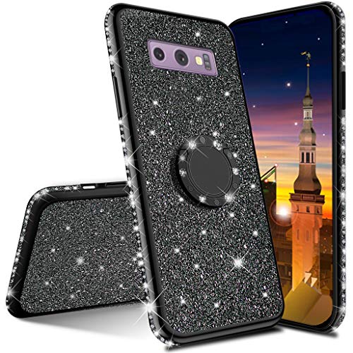 MRSTER Compatibile con Samsung Galaxy S10+ Custodia Glitter Bling Scintillante Brillantini Custodia con Ring Kickstand Rotante a 360 Gradi Donna Cover per Samsung Galaxy S10 Plus. Black
