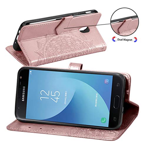 MRSTER Cover Compatibile con Samsung Galaxy J7 2017, Flip Case Premium Protettiva Portafoglio PU Pelle Custodia per Samsung Galaxy J7 2017 J730. SD Mandala Rose Gold