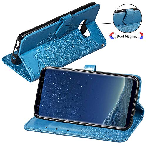 MRSTER Cover Compatibile con Samsung Galaxy S8 Plus, Flip Case Premium Protettiva Portafoglio PU Pelle Custodia per Samsung Galaxy S8+ / S8 Plus. SD Mandala Blue