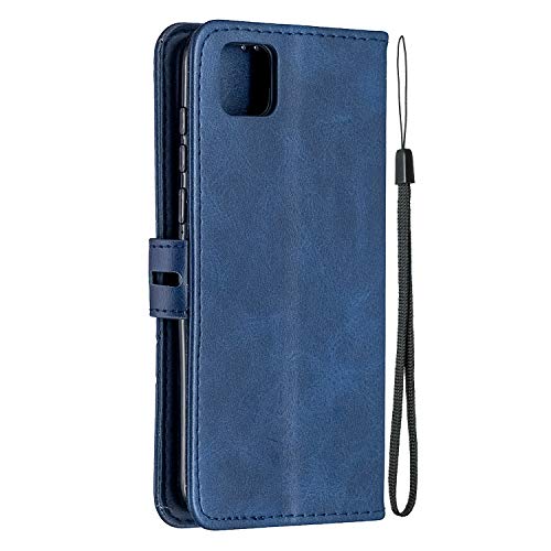 MRSTER Cover per Huawei Y5p, Semplice ed Elegante Book Style Internamente Silicone TPU Case Flip Cover in Pelle PU Premium Custodia per Huawei Y5p 2020 / Honor 9s. Retro Blue