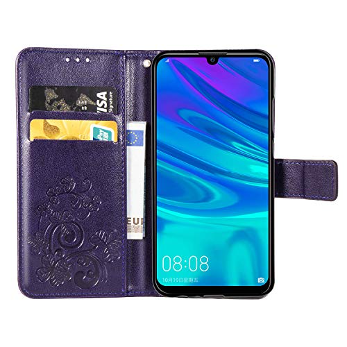 MRSTER Cover per Huawei P Smart+ 2019, Custodia in Pelle Honor 20 Lite, Custodia a Portafoglio con i Disegni in Rilievo per Huawei P Smart Plus 2019 / Honor 20 Lite. Luck Clover Purple