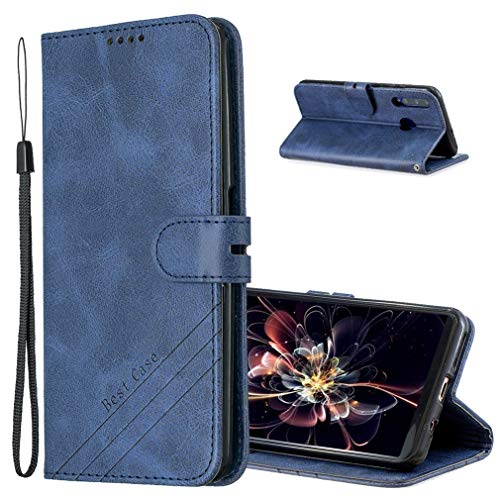 MRSTER Cover per Huawei P Smart 2019, Semplice ed Elegante Book Style Internamente Silicone TPU Case Flip Cover in Pelle PU Premium Custodia per Huawei P Smart 2019 / Honor 10 Lite. Retro Blue