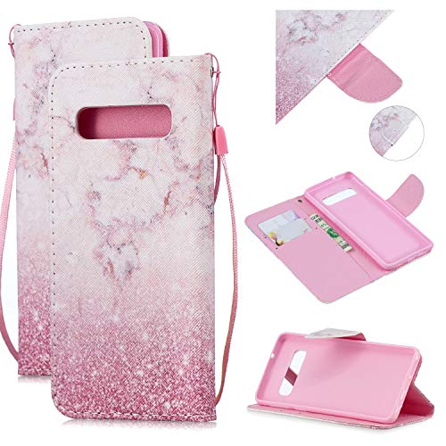 MRSTER Cover per Samsung Galaxy S10e, Moda Bello Custodia a Libro in Pelle PU Flip Portafoglio Custodia Shockproof Resistente Case per Samsung Galaxy S10e. HX Pink Marble