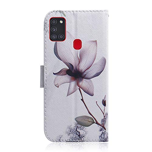 MRSTER Cover per Samsung Galaxy A21s, Moda Bello Custodia a Libro in Pelle PU Flip Portafoglio Custodia Shockproof Resistente Case per Samsung Galaxy A21s. EF White Lotus