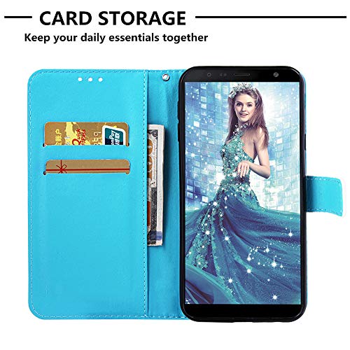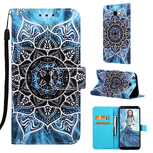 MRSTER Cover per Samsung Galaxy J4+, Flip Case Moda Bello Custodia a Libro Portafoglio Cuoio in Pelle PU Protettiva Custodia per Samsung Galaxy J4+ / J4 Plus 2018. YI Blue Mandala