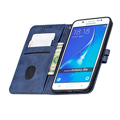 MRSTER Cover per Samsung Galaxy J5 2016, Semplice ed Elegante Book Style Internamente Silicone TPU Case Flip Cover in Pelle PU Premium Custodia per Samsung Galaxy J5 2016. Retro Blue