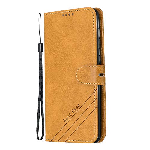 MRSTER Cover per Samsung Galaxy A70, Semplice ed Elegante Book Style Internamente Silicone TPU Case Flip Cover in Pelle PU Premium Custodia per Samsung Galaxy A70. Retro Yellow