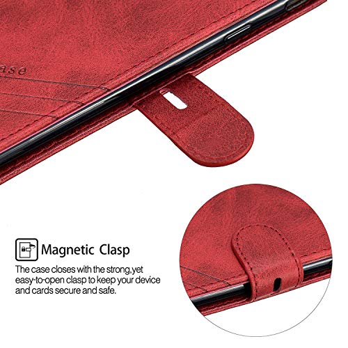 MRSTER Cover per Samsung Galaxy J4+, Semplice ed Elegante Book Style Internamente Silicone TPU Case Flip Cover in Pelle PU Premium Custodia per Samsung Galaxy J4 Plus 2018. Retro Red