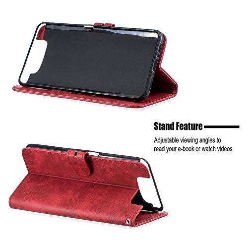 MRSTER Cover per Samsung Galaxy A80, Semplice ed Elegante Book Style Internamente Silicone TPU Case Flip Cover in Pelle PU Premium Custodia per Samsung Galaxy A80. Retro Red